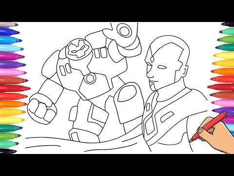 Related Video with DRAWING SUPERHEROES COLORING PAGE WITH SHARPIES & COLORED MARKERS - IRON MAN HULKBUSTER AND VISION